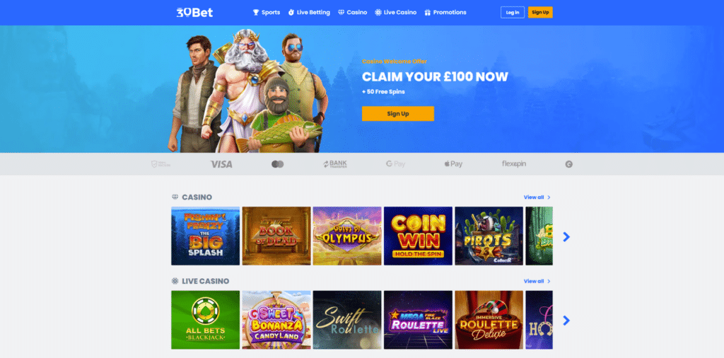 With a clean blue-and-white design, 30Bet promises a user-friendly experience and a fresh approach to online gambling. It caters to a diverse audience, with games powered by over 20 top software providers, ensuring a wide variety of gaming choices for every type of player.